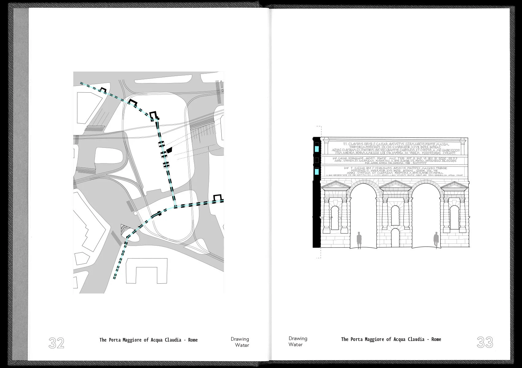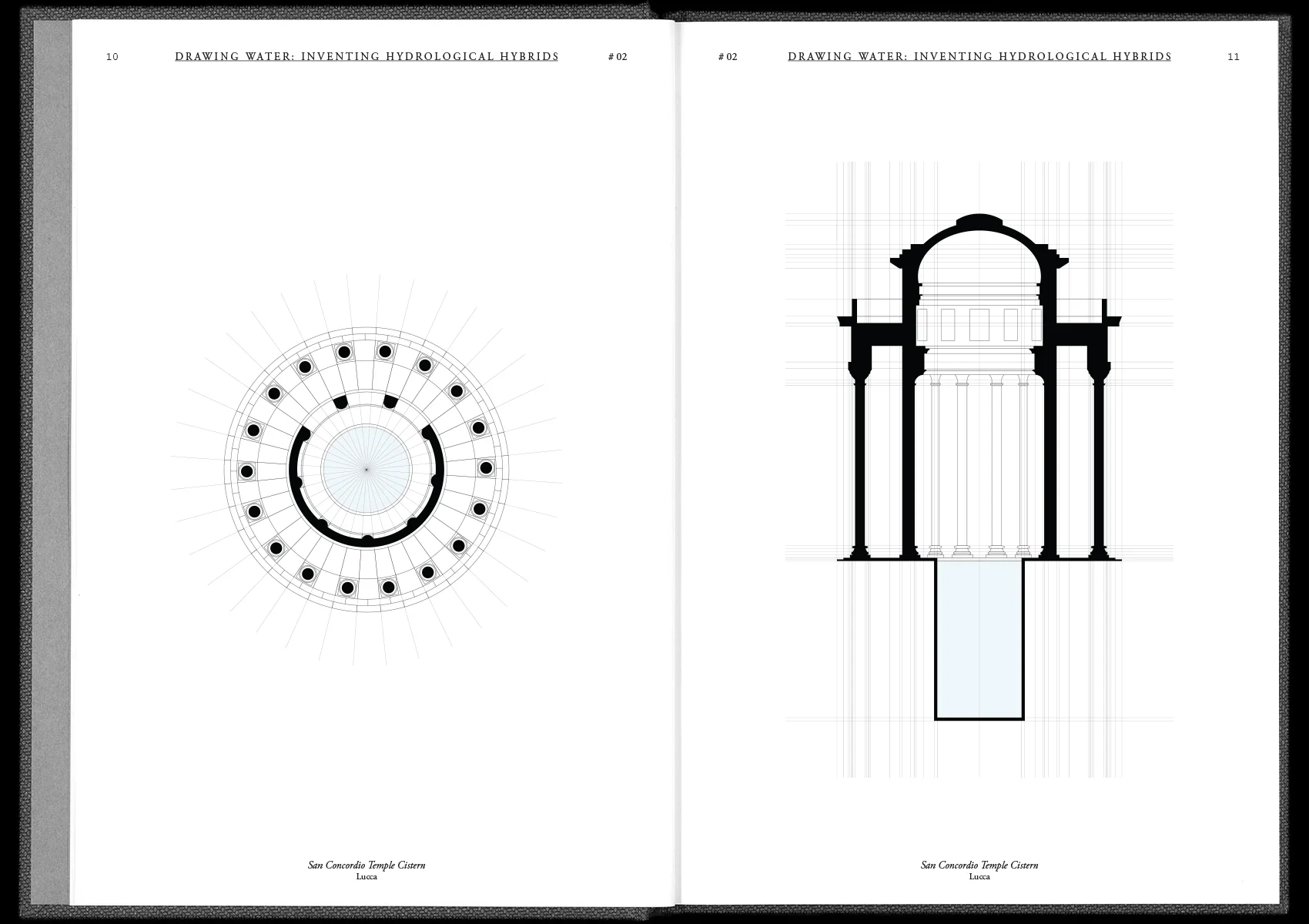 Drawing Water: The images shown here are analytical and hypothetical drawings produced by students for a seminar I led titled “Drawing Water: Inventing Hydrological Hybrids” at Syracuse University in Florence during the fall of 2018 and 2019. The images are excerpts from a book the class produced for the final semester project. The students were asked to examine Florence’s tumultuous relationship with water, particularly the catastrophic flooding of the Arno River that has occurred at various times throughout its history, from the high renaissance to the present day. The course focused on the interwoven relationship between Italian architectural history and Italian innovations in hydrological design in order to speculate on new potentials for water infrastructure in Florence, a city whose future may largely depend on its relationship to water.